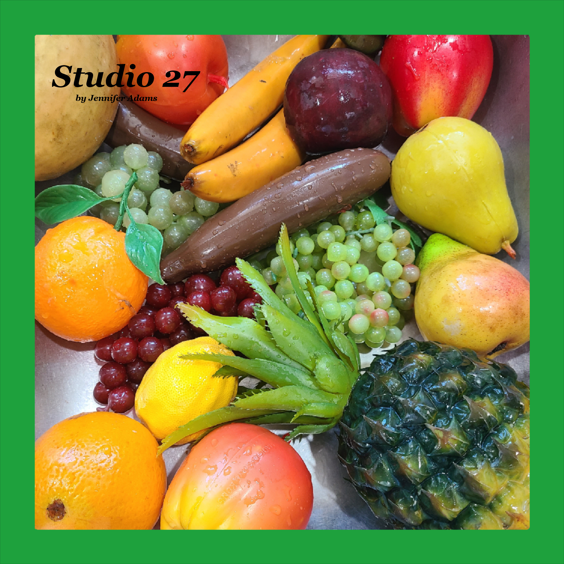 You guys know that I practically live at the thrift store, but I'm also super picky about cleanliness.  I love recycling used goods, but they must be properly cleaned as soon as I get them home.  Here is an example of how I went about cleaning a collection of faux produce: